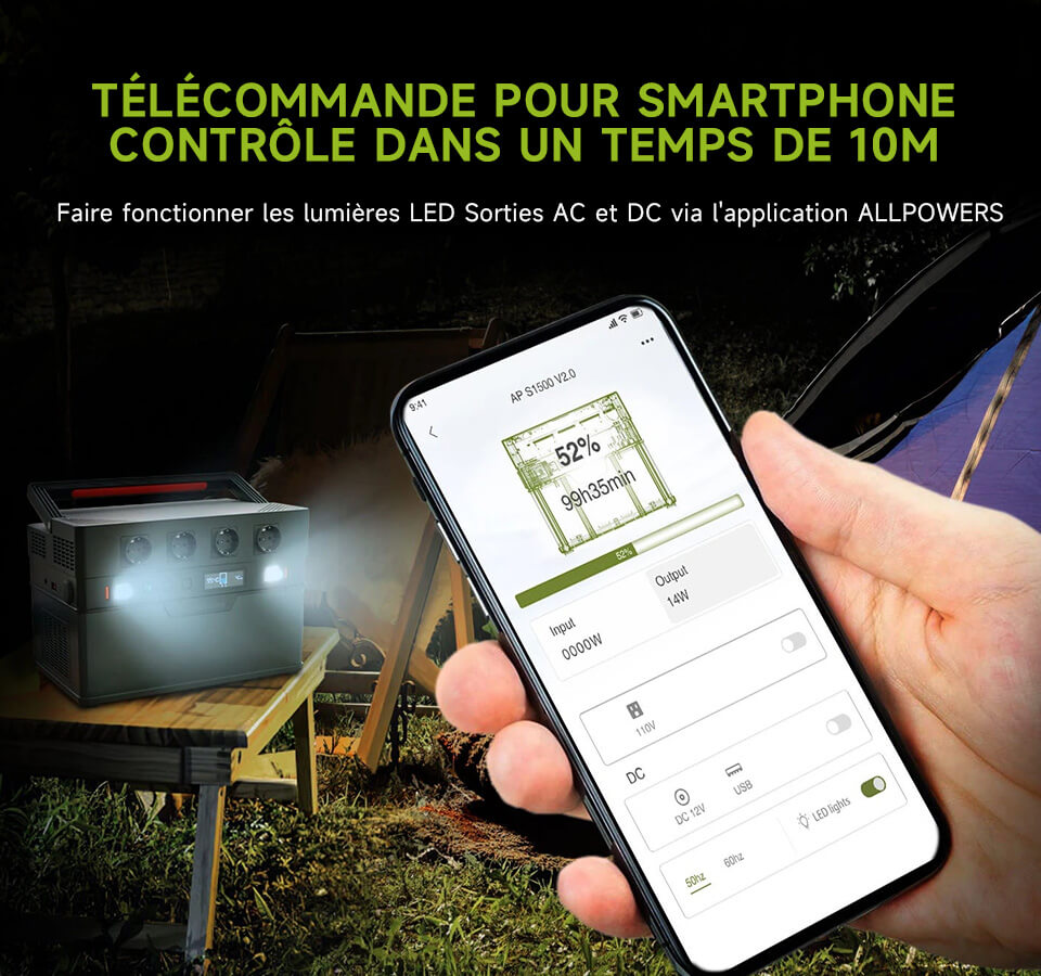 - Télécommande téléphonique avec l'application ALLPOWERS ;
