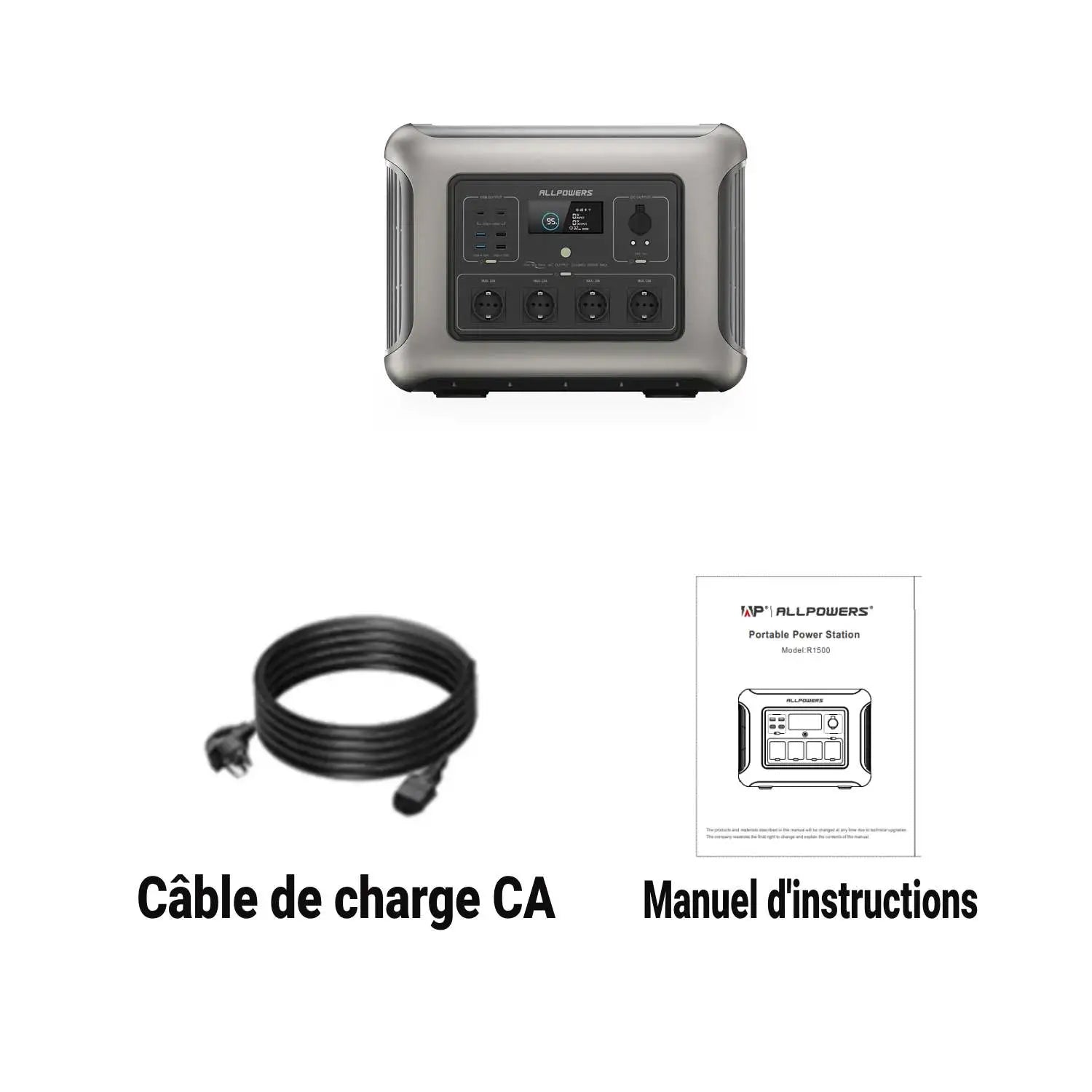 Si vous achetez la centrale électrique R2500 et le panneau solaire, le colis comprend :