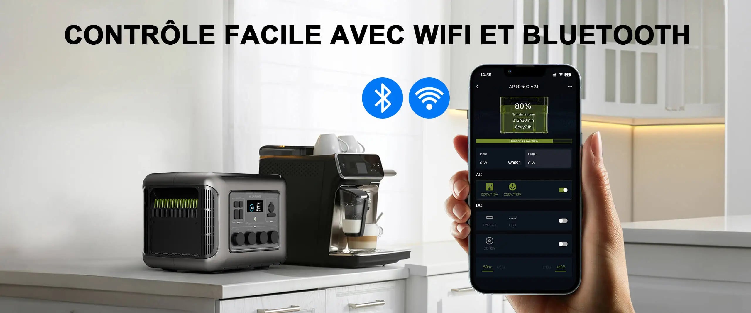 Facile à réaliser en se connectant à l'application ALLPOWERS via la surveillance de l'alimentation WIFI/réglage des fonctions/télécommande/mise à niveau du système.