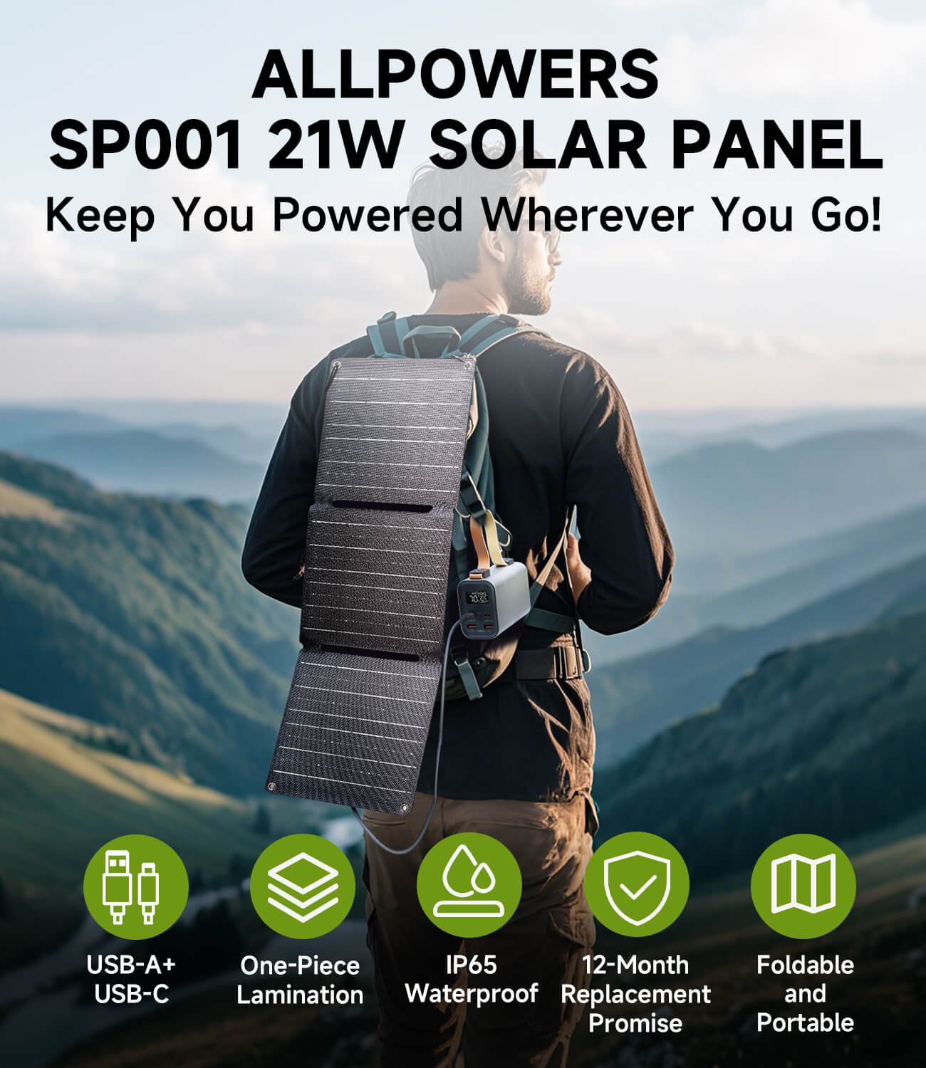 Rechargé par des panneaux solaires SP001 21W