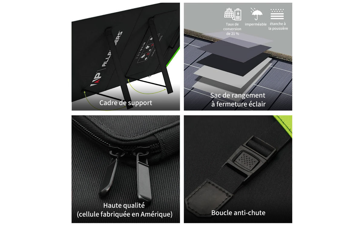 Equipé du connecteur connecteur solaire et du contrôleur DC, le panneau solaire ALLPOWERS 140W est hautement compatible avec la plupart des générateurs solaires du marché.