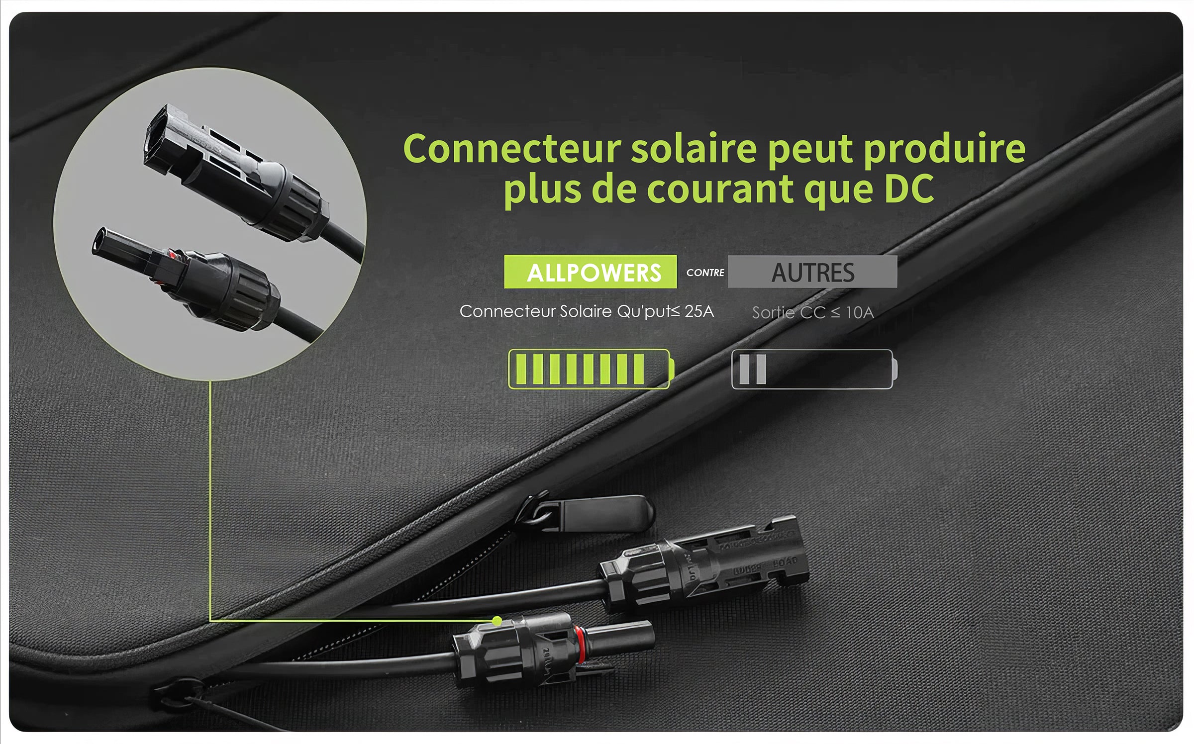 - Compatible avec la plupart des générateurs solaires avec connecteurs connecteur solaire;