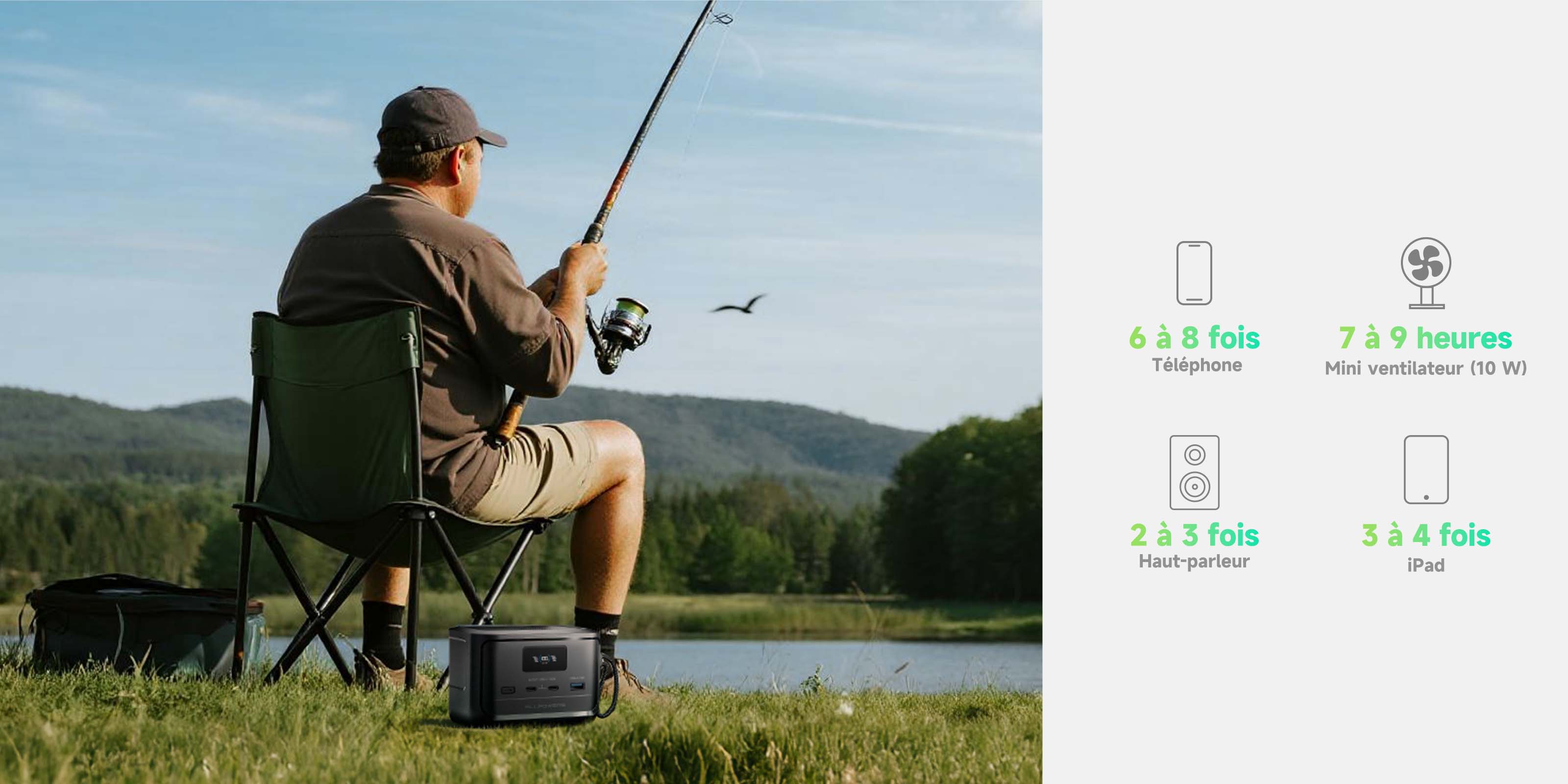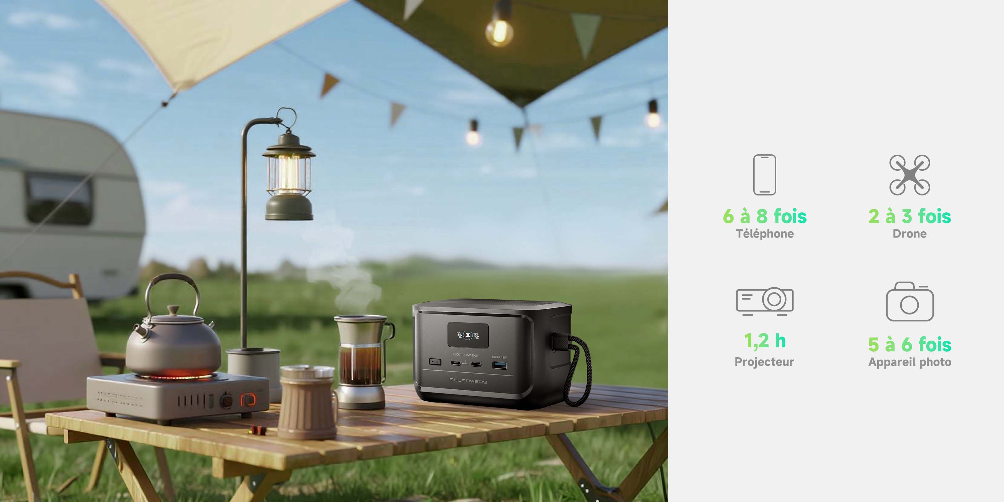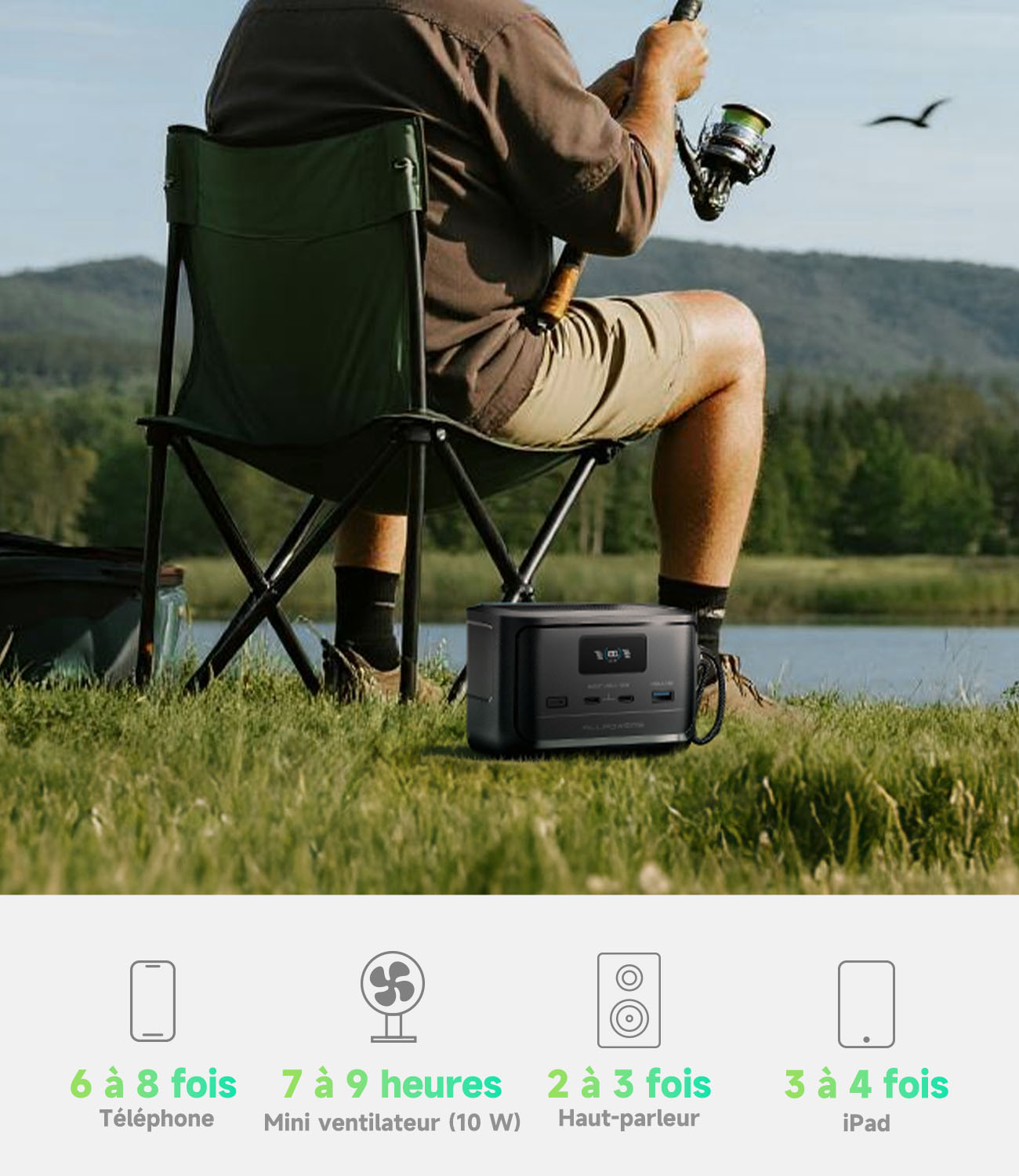 - Alimentez tous vos appareils électroniques où que vous soyez avec polyvalence, silence absolu et zéro émission ;