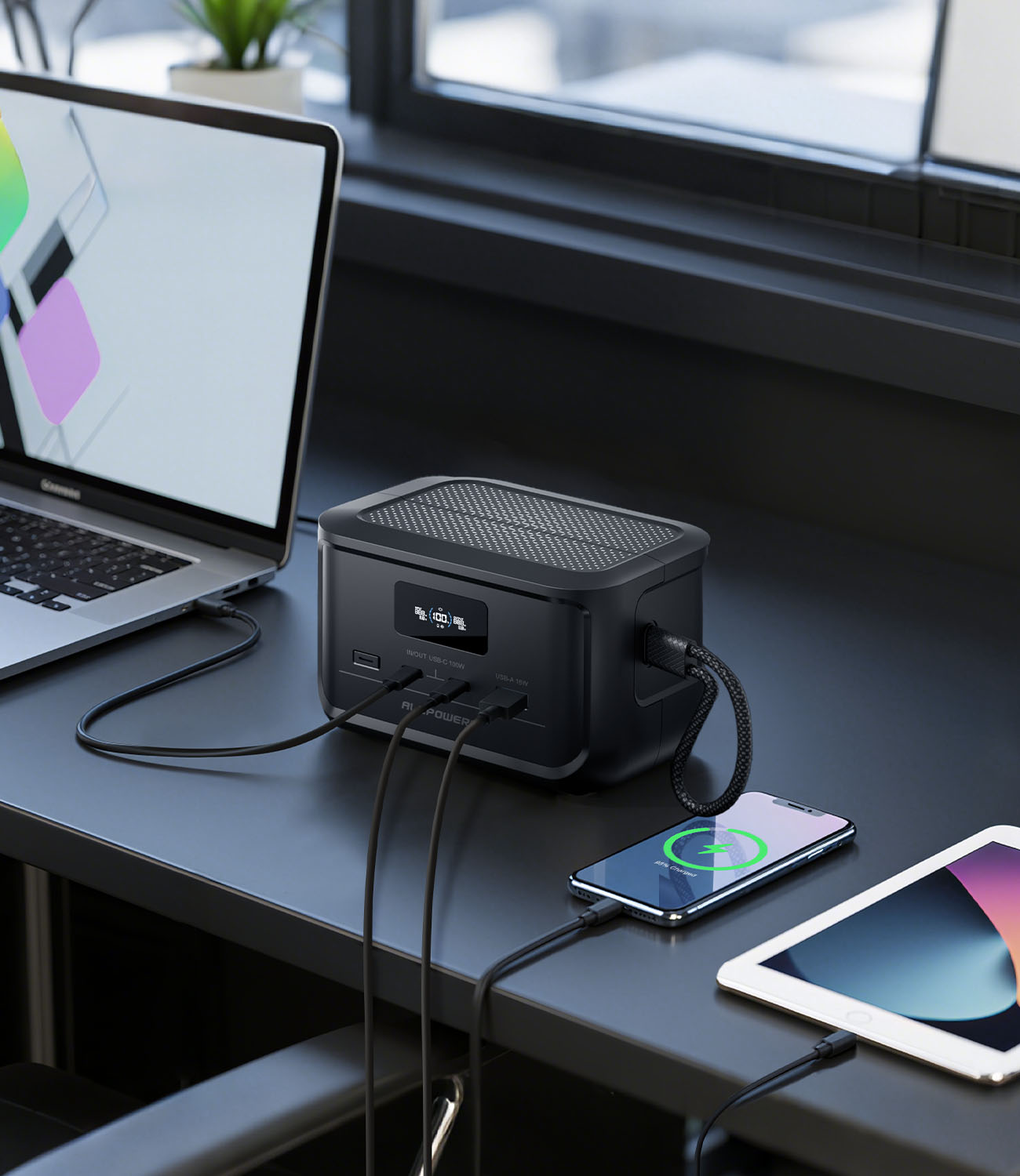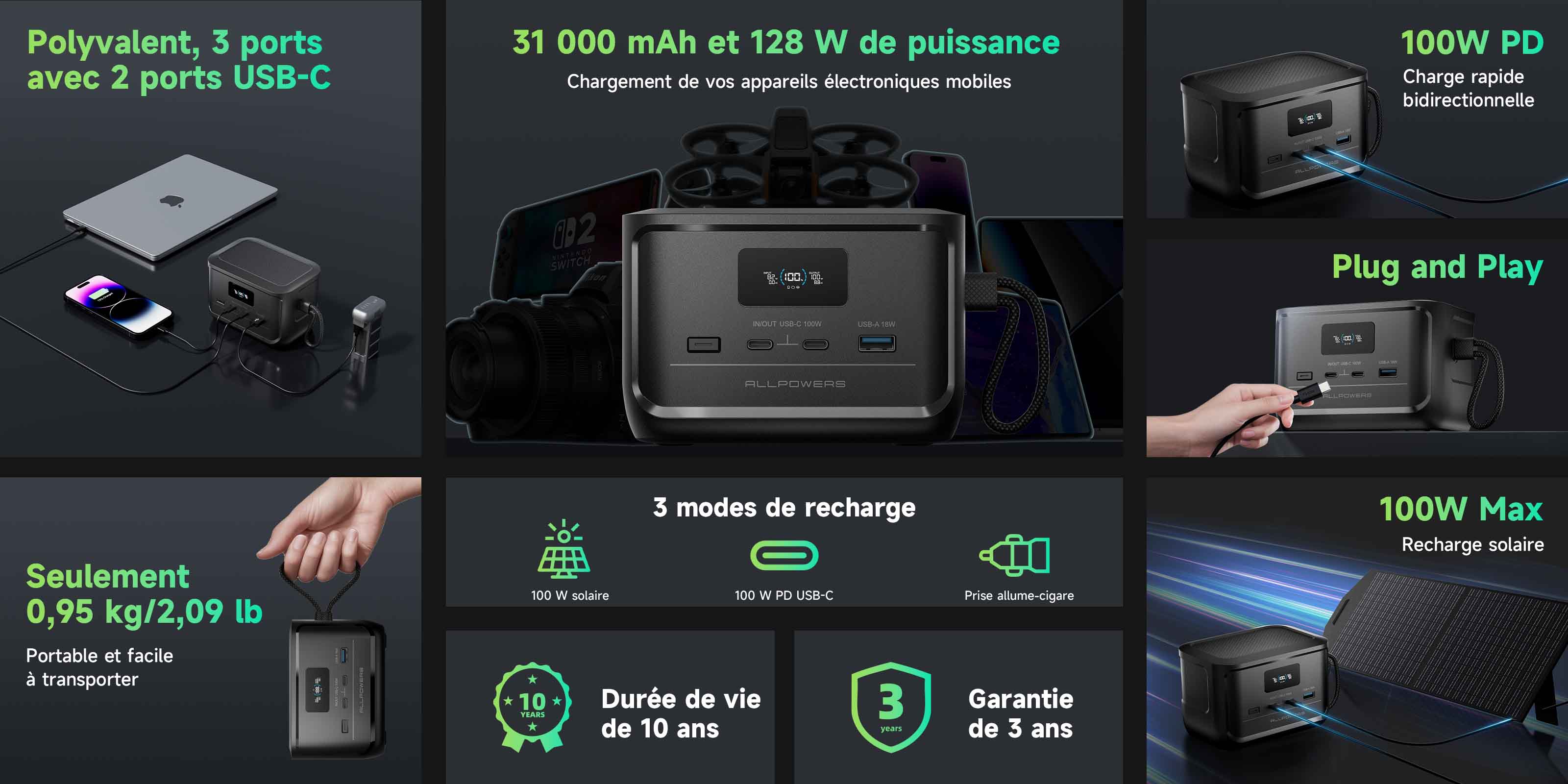 - Charge et décharge rapides double USB-C 100 W ;