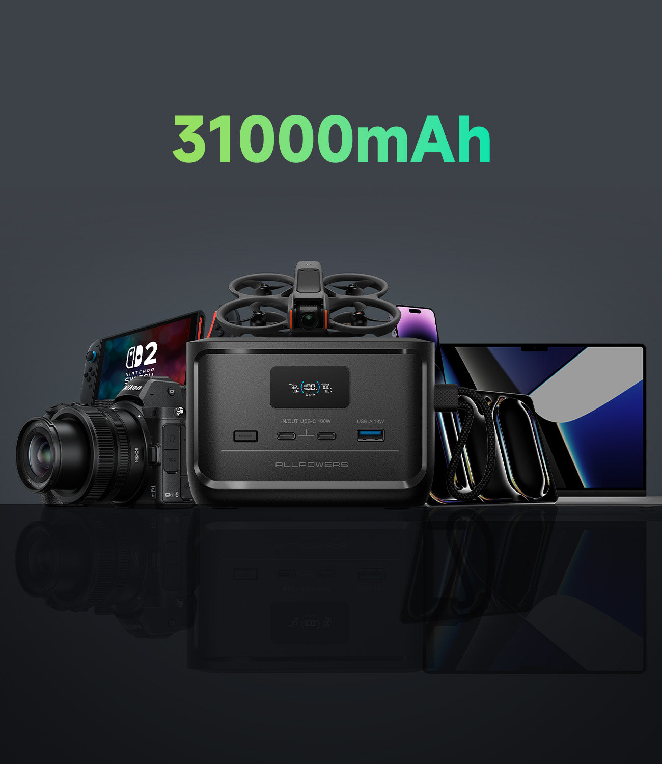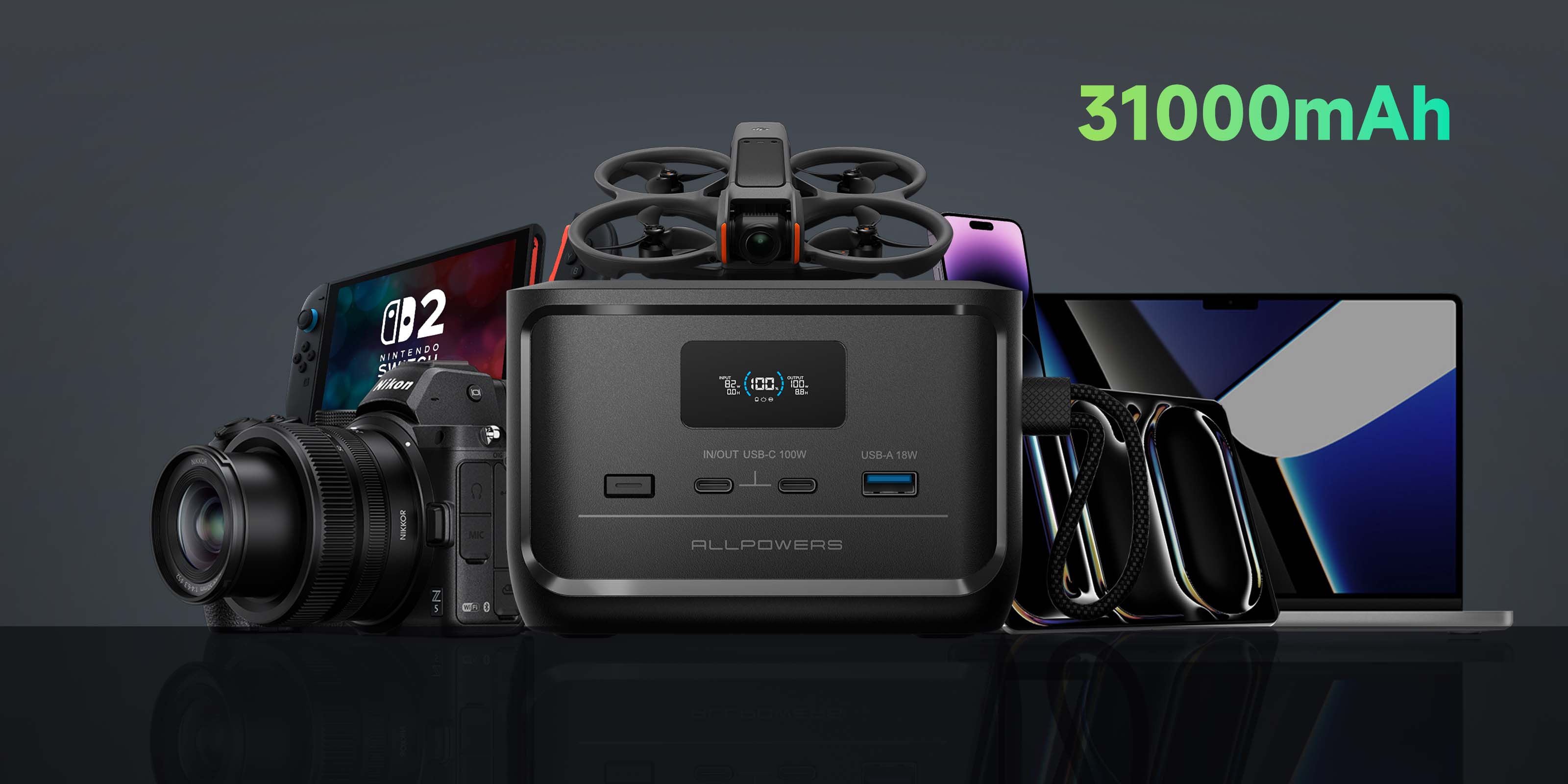 L'ALLPOWERS SOLAX P100 est la solution d'alimentation portable idéale, avec une capacité de 31 000 mAh (99 Wh) dans un format compact et nomade. Que vous campiez hors réseau, télétravailliez ou vous prépariez aux urgences, cette batterie puissante maintient vos appareils essentiels chargés.