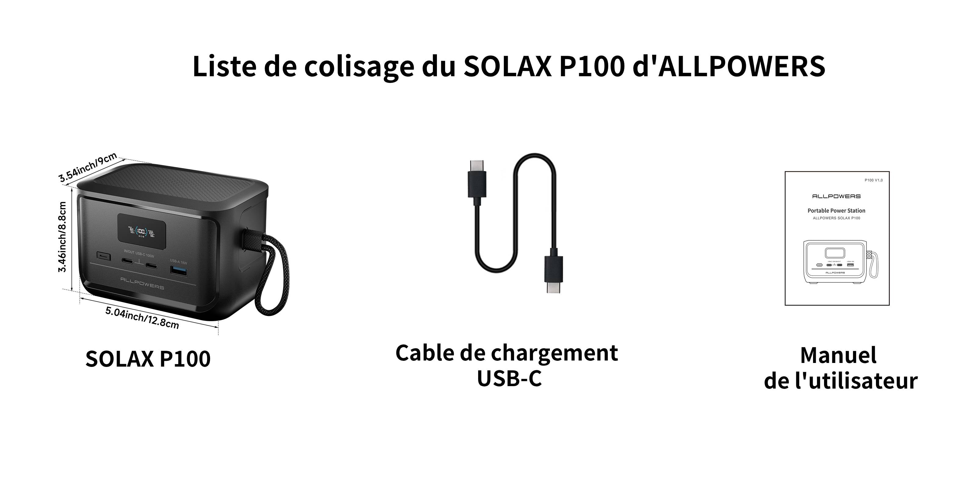 ALLPOWERS SOLAX P100 DC Station électrique portable | 128W 99.2Wh