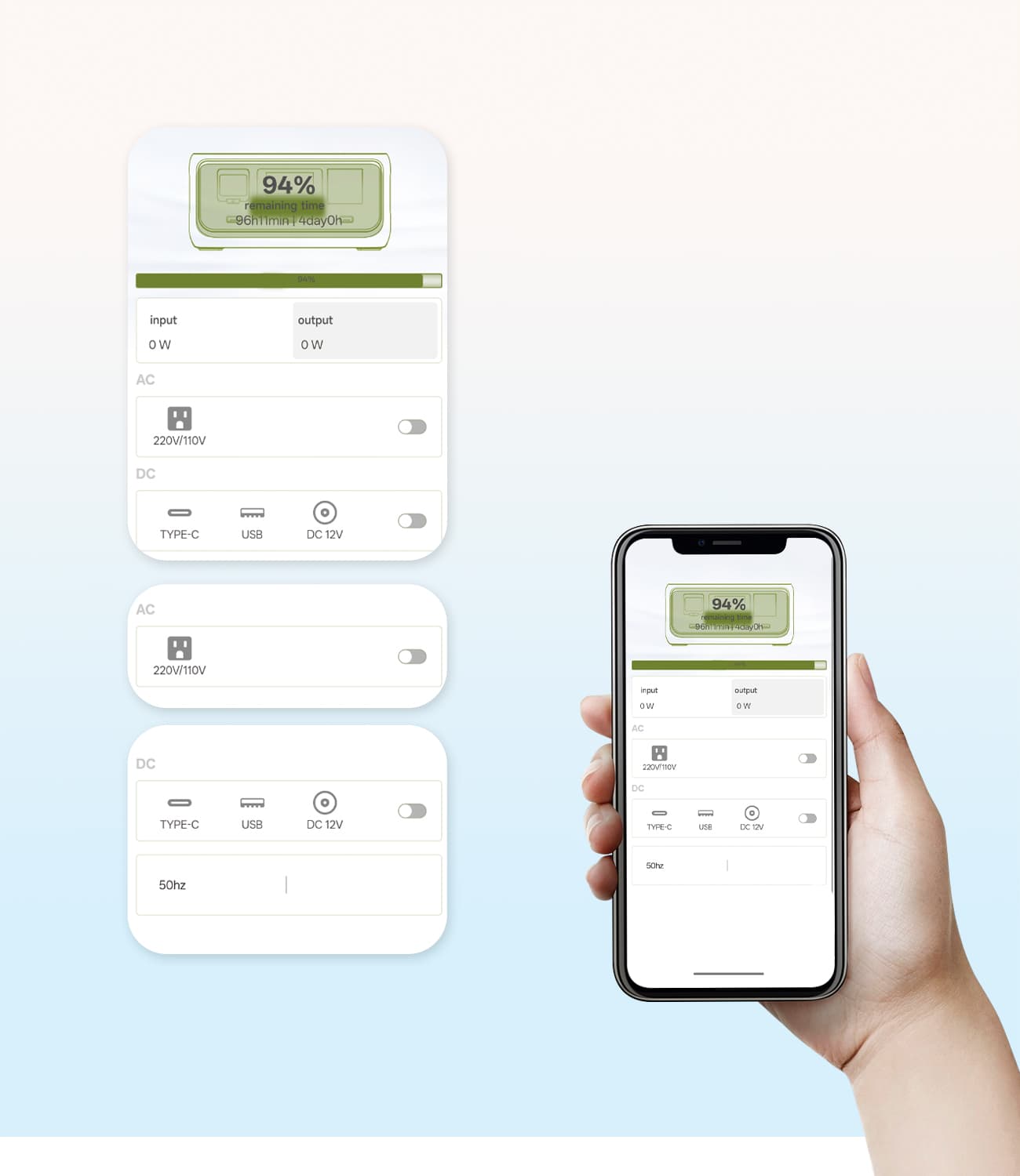 Votre centrale électrique, désormais télécommandée. Surveillez la consommation et gérez vos appareils depuis l'autre bout de la pièce (ou même depuis une autre pièce) grâce à l'application Bluetooth ALLPOWERS.