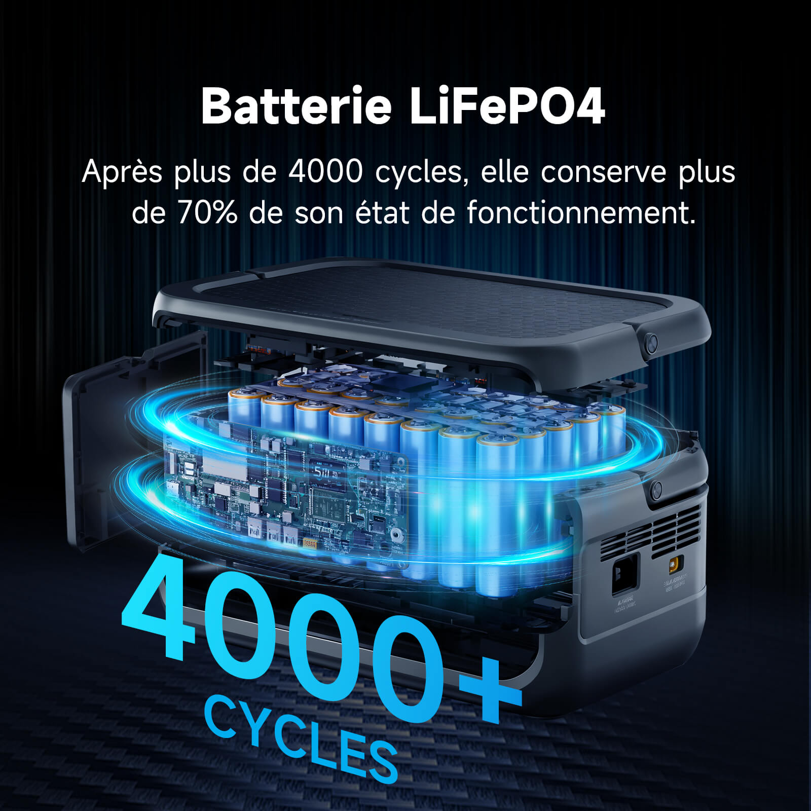 - Batterie LiFeP04 longue durée : avec plus de 4000 cycles de charge;