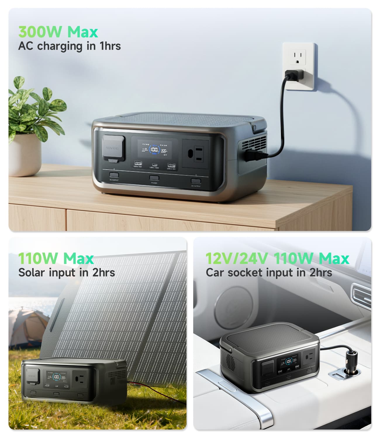 - Charge rapide : Entrée CA maximale de 300 W, de 0 à 100 % en 1 heure ;