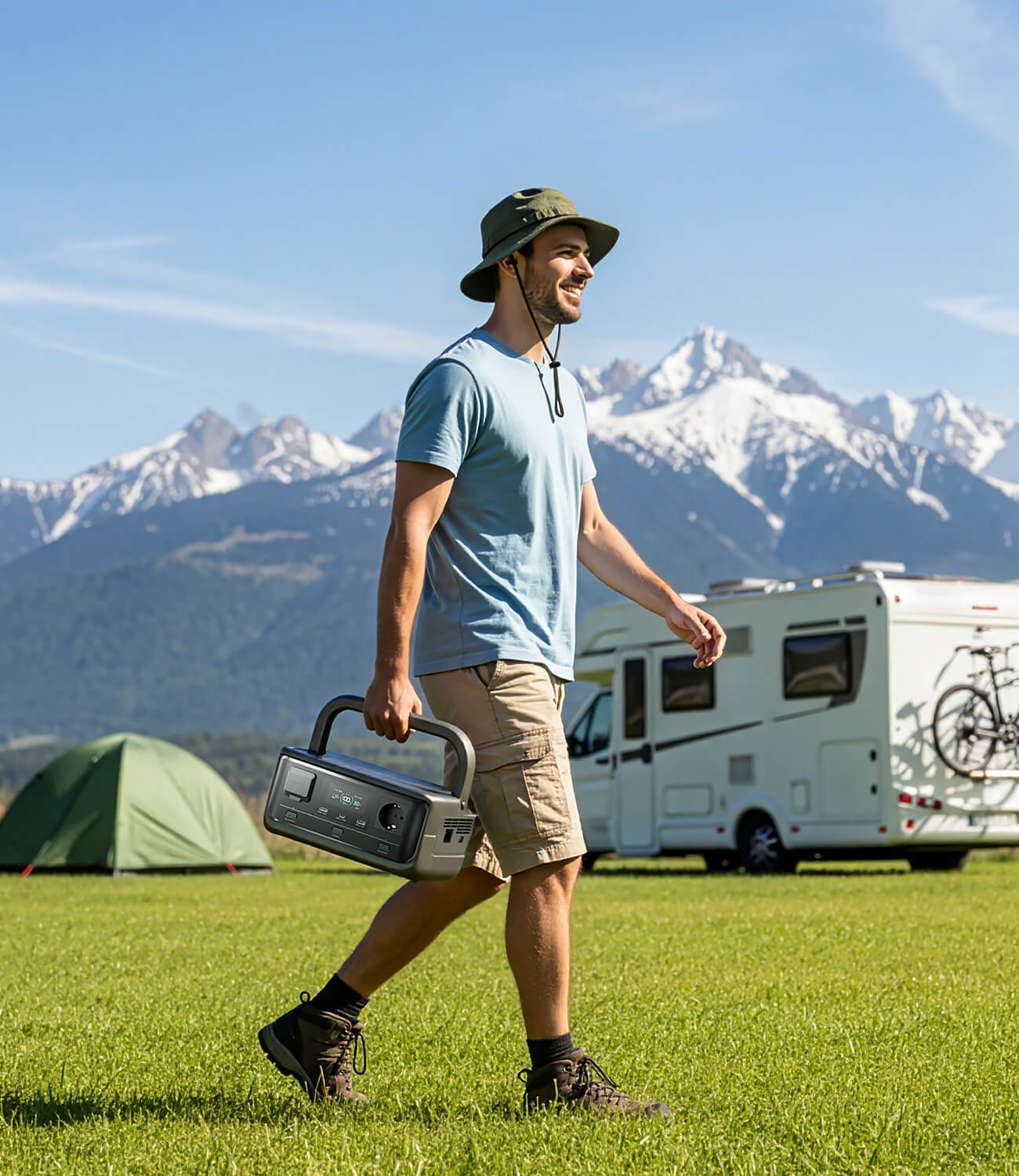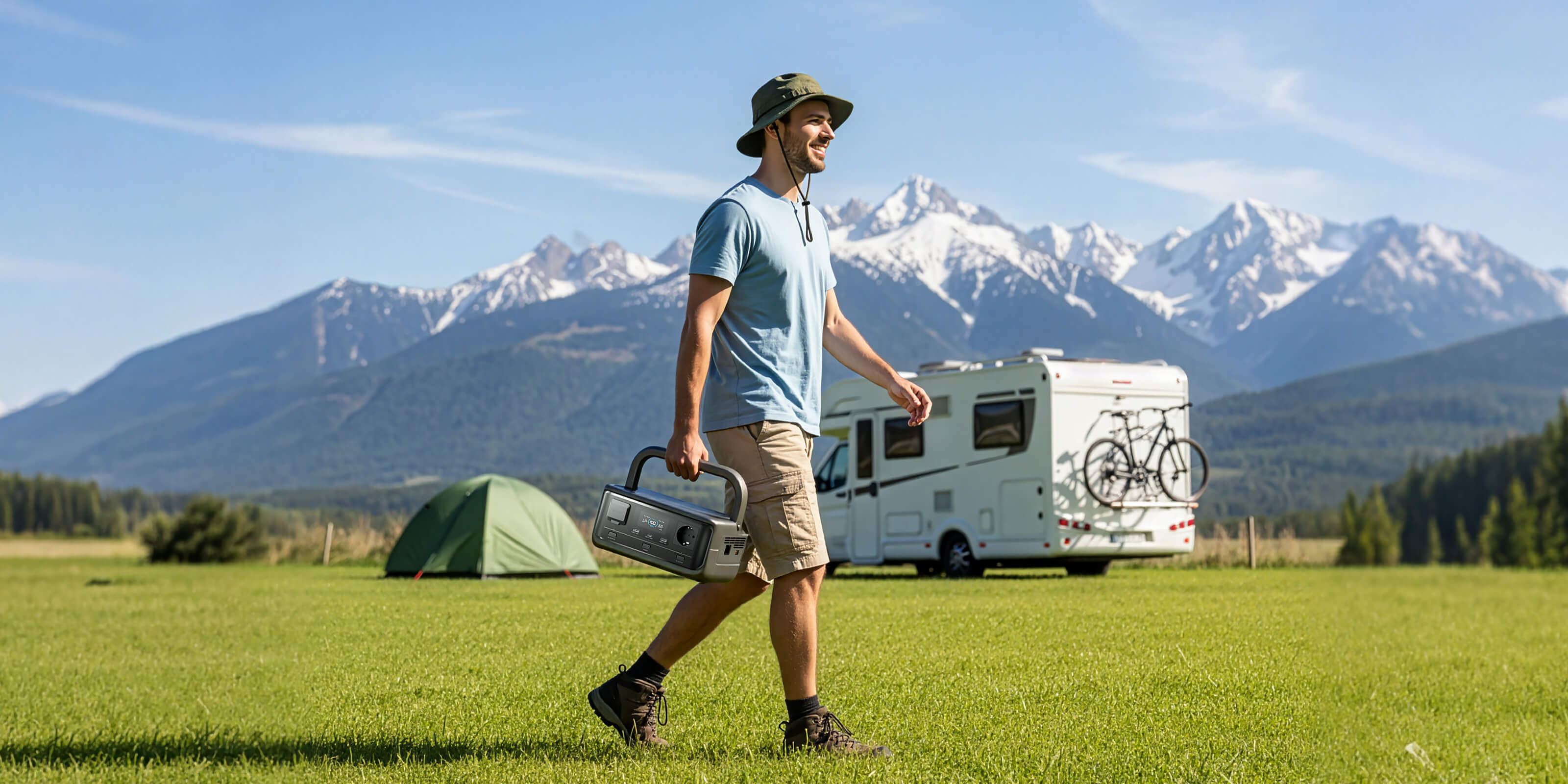 Votre compagnon de puissance pour le grand extérieur. Prêt au soleil et portable.