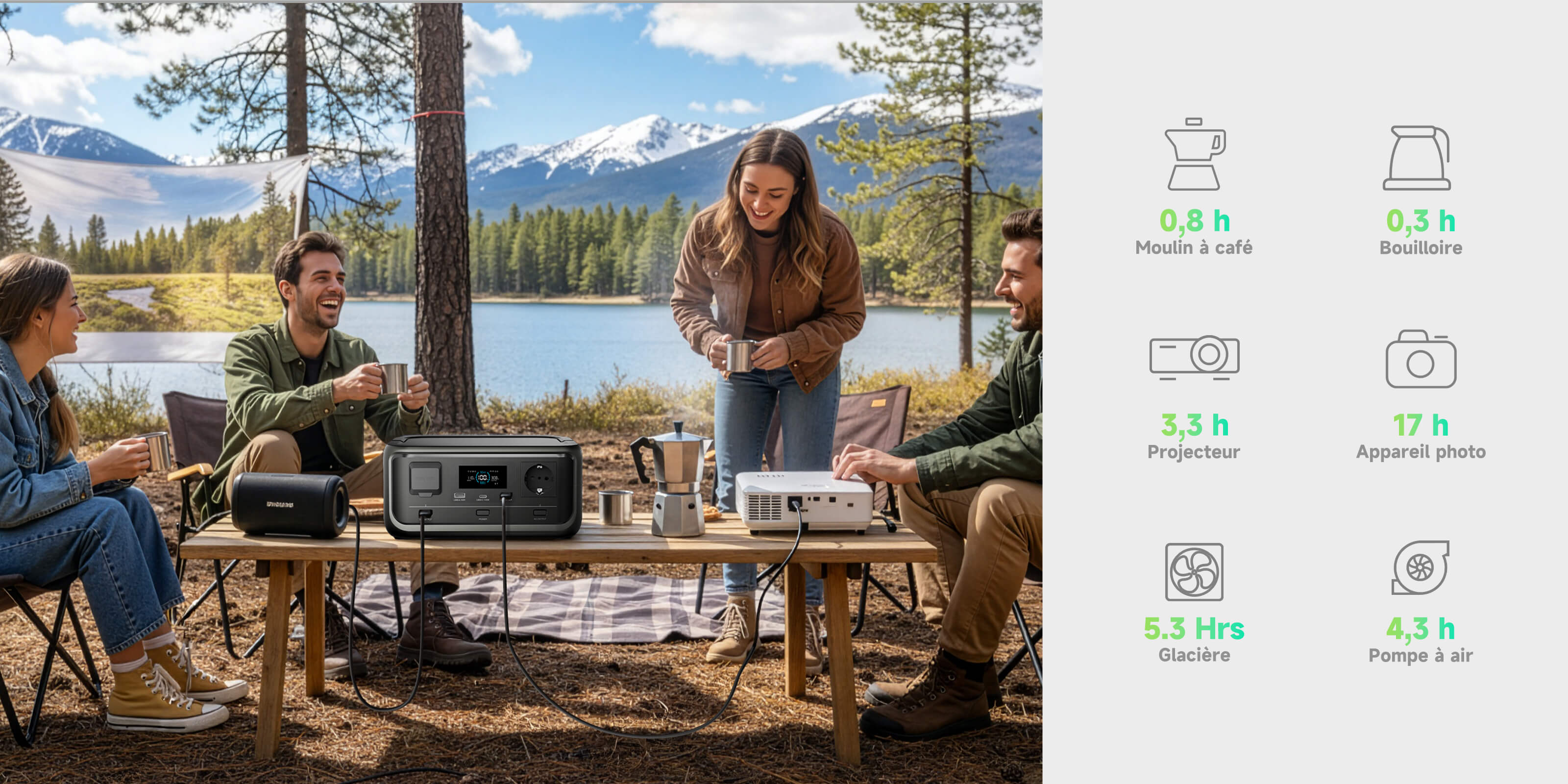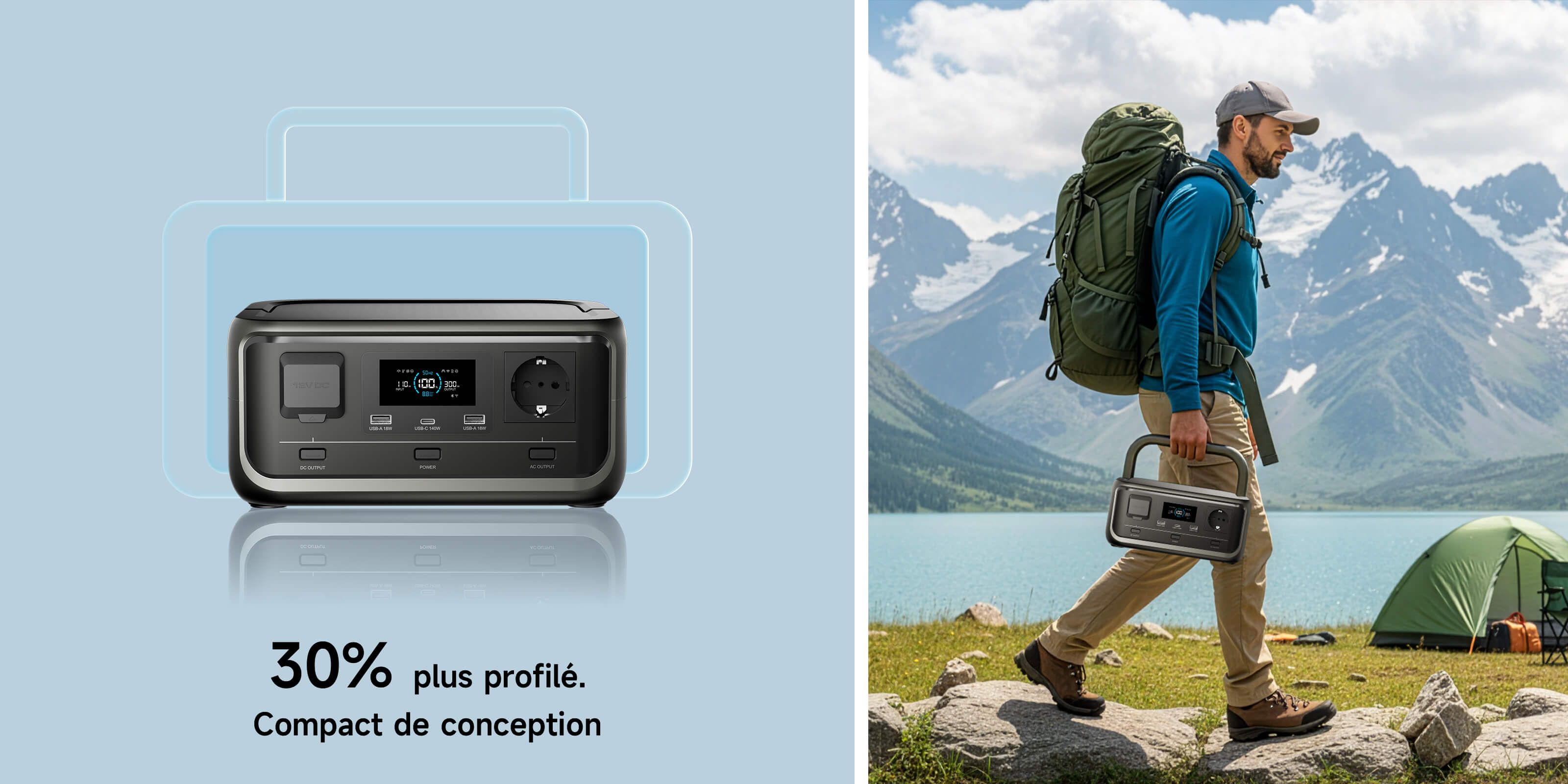 Votre compagnon de puissance pour le grand extérieur. Prêt au soleil et portable.